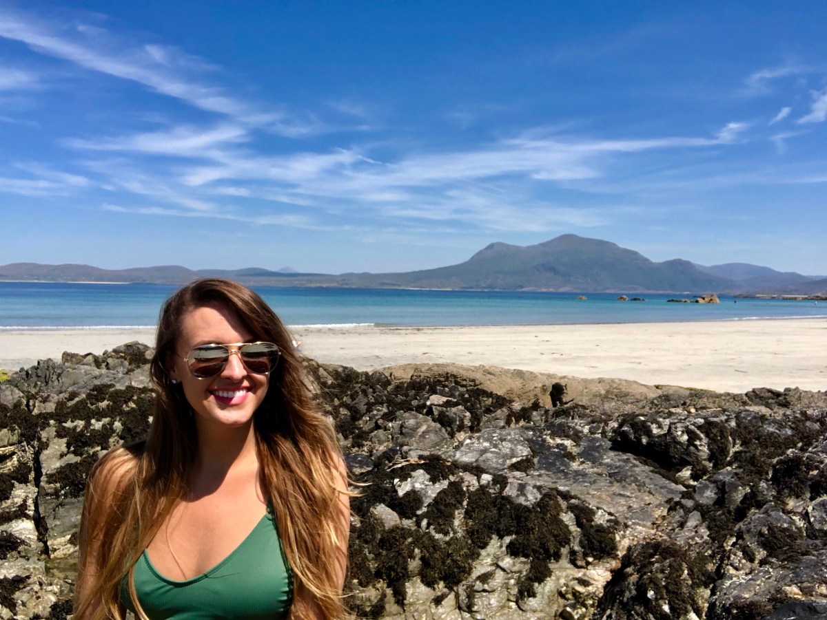 Next, I had planned to hike, but I was BURNING UP. I hadn’t expected Ireland to be so hot, but walking all over Kylemore had me parched and exhausted. Good thing I was near a beach and had a swimsuit in my trunk. I made my way to Renvyle Beach. I love the beaches in Ireland because they are generally unexpected. You’re driving through these vibrant green hills, with sheep everywhere, make a left hand turn, and there’s more green with a random beach beneath, mountains in the background. It was beautiful. I stayed there for quite some time, just relaxing and taking it all in.
