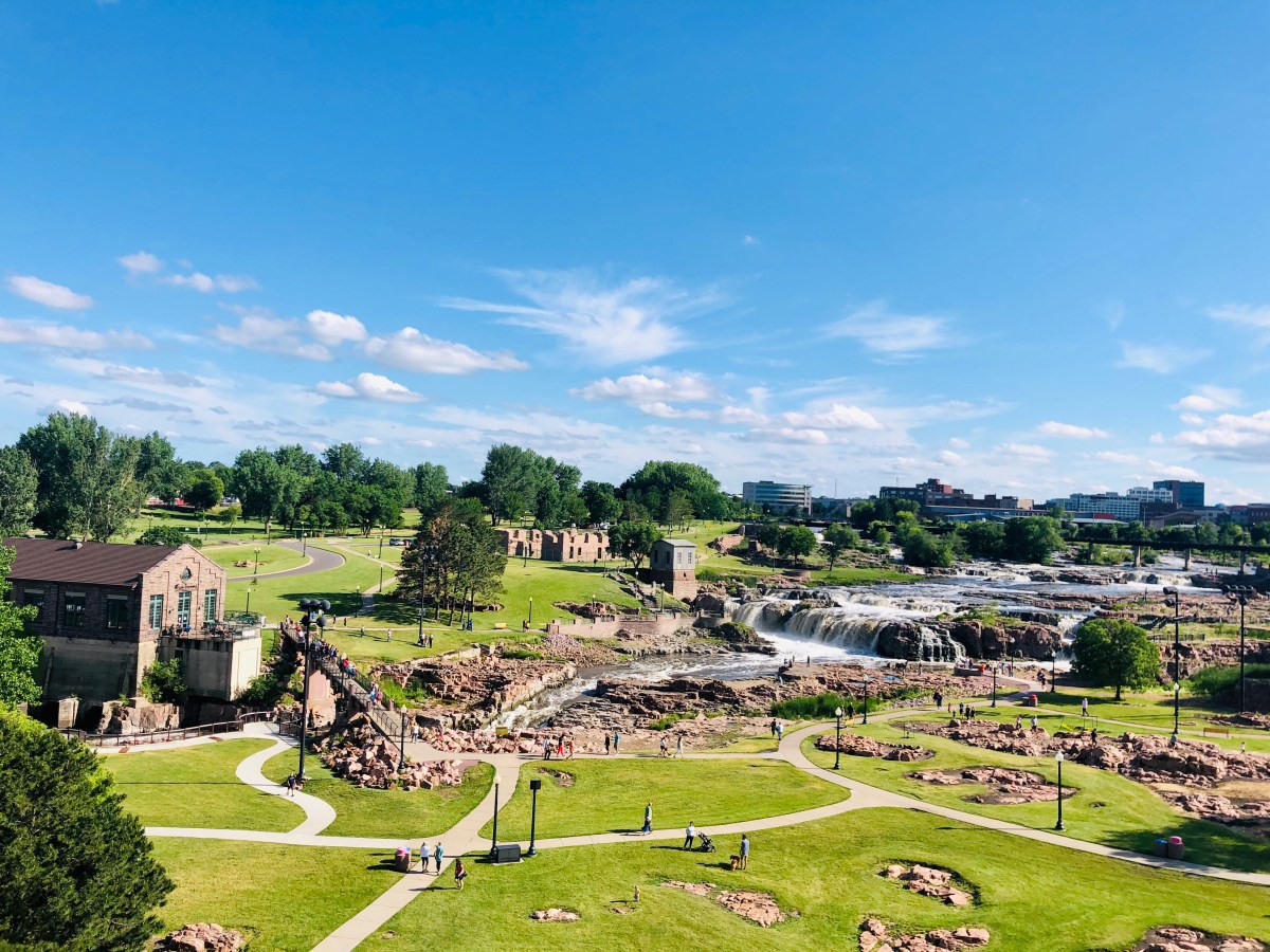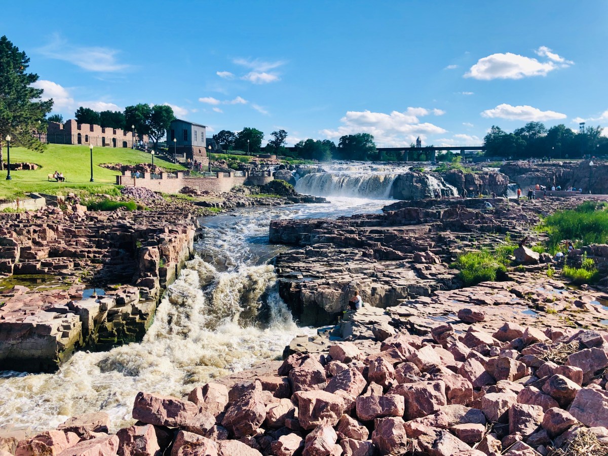 We made some incredible time getting to South Dakota. One would sleep and the other would drive, usually switching off every 4 hours or as far as we could go. We were still trying to make it to the Badlands and had yet to make any stops minus gas, but after researching and finding out that Sioux Falls had a park inside of the town that has an old mill, gift shop, and an impressive waterfall I requested we at least stop and check it out.