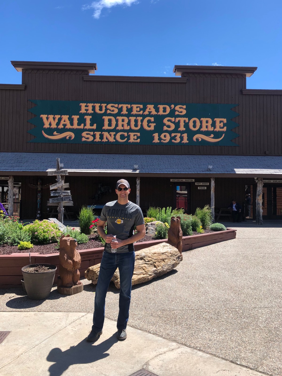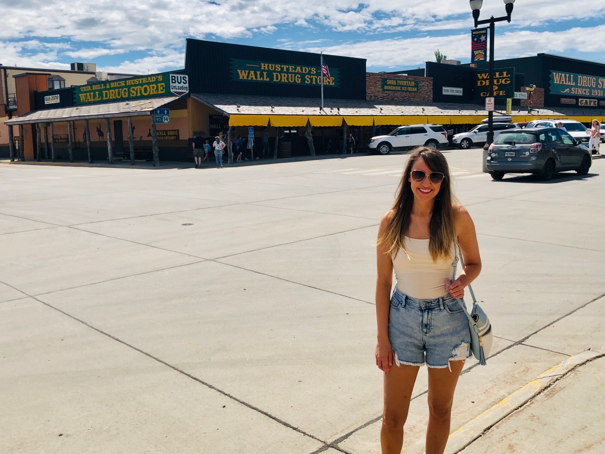 Going west on I-90, you’ll pass a TON of vintage-style hand-painted signs promoting Wall Drug. A couple who owned the drug store made the most of the new road that was being built into the Badlands in 1936, successfully supplementing revenue by pulling travelers off Highway 16, the dusty east-west route across South Dakota in those years before Interstate 90. The bait proposed to lure travelers? Free ice water. Today, Wall Drug is a major tourist attraction. It has a restaurant, gift shop, donut factory, western store, traveler’s chapel, arcade, rock shop, art gallery, book store, pharmacy, and a “back yard” area that features a roaring T-rex, a mini Mt. Rushmore, and a perfect photo op, a 6 ft. tall Jack-a-lope. We were only briefly able to check Wall Drug out, as there were so many people around, and we were trying to avoid crowds as much as possible. If you’re making a trip to the Badlands, you need to at least make a quick trip to Wall Drug as well.
