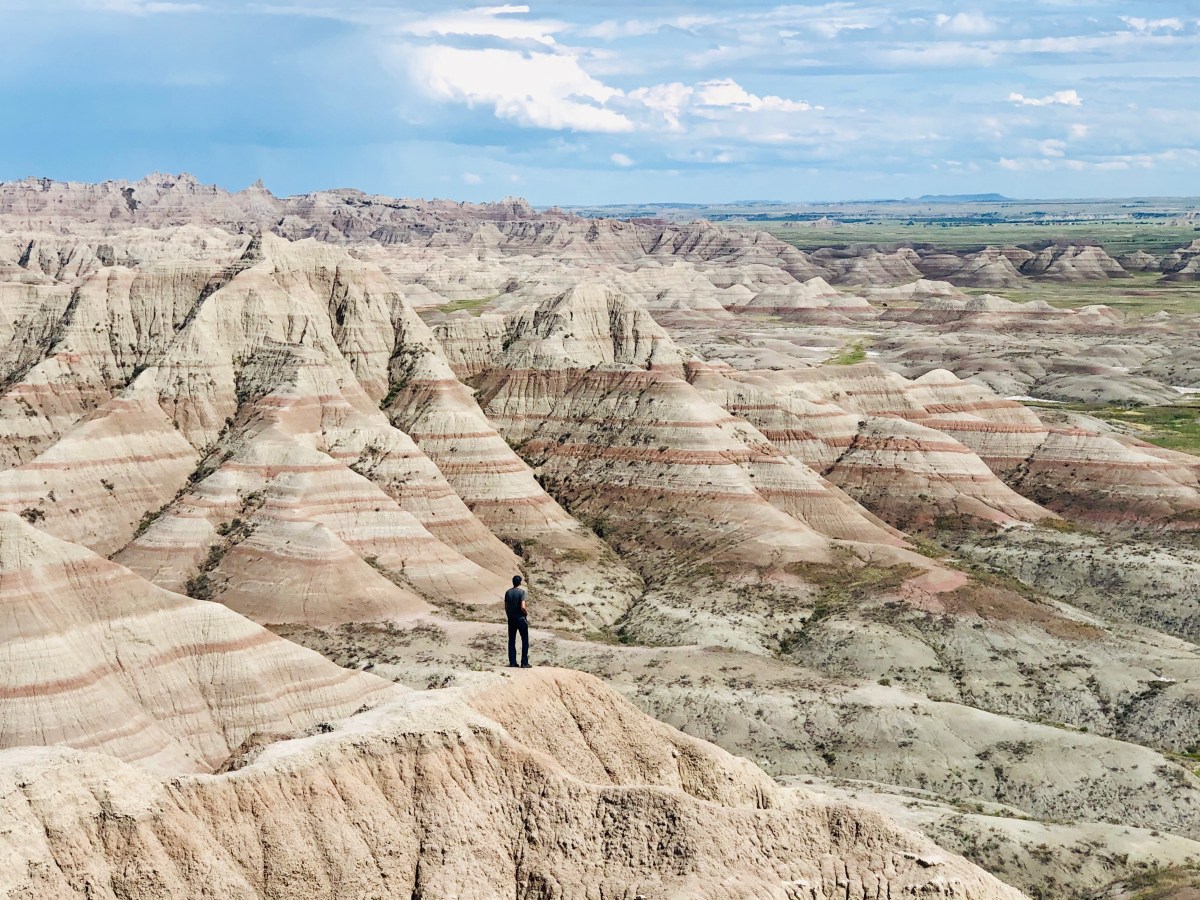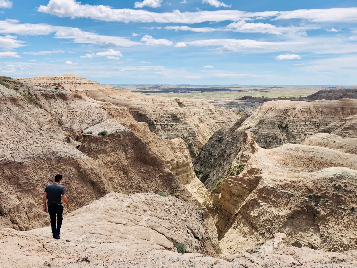 Badlands National Park is open year-round for 24 hours/day. There’s both a North Unit and a South unit. Due to COVID-19, the South Unit was closed, but still left us the North Unit to explore. There are a total of 16 different overlooks, which are a short driving distance away from each other. You can drive to each of them, park, and walk on the boardwalk (or if you’re like Scott and want to risk your life.. go onto some of the rock formations). Each is beautiful in its own right, and surprisingly enough you’ll find one greatly varies from the last. Your eyes will always have new sights to feast on. Make sure you eat it all up.