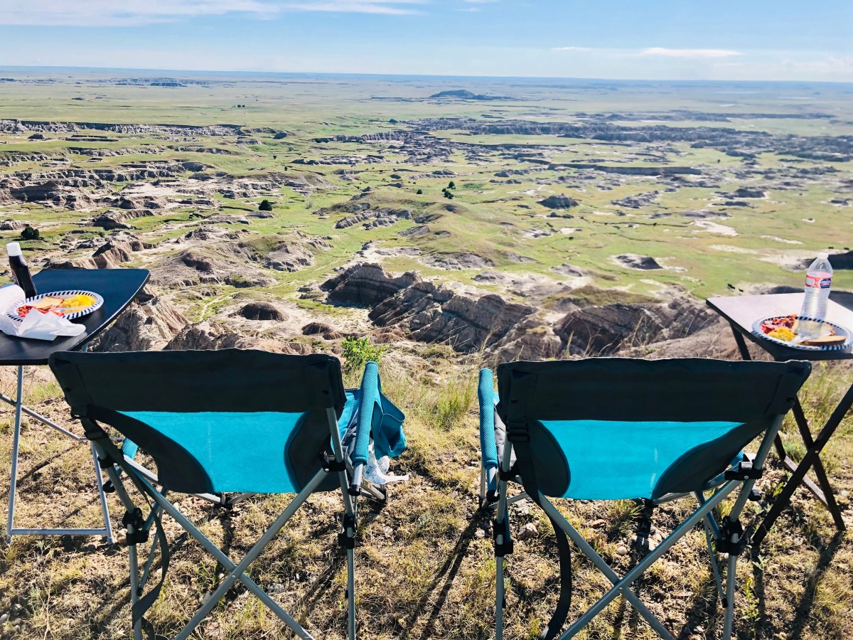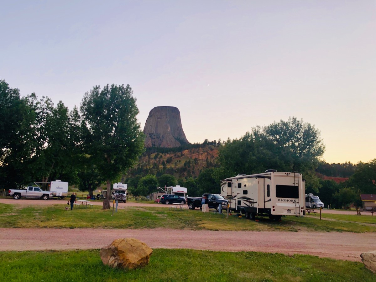 The coolest RV camp we experienced was here. The Devil’s Tower KOA is located right outside of the grounds, and has many sites where you can directly view the tower from your RV/ camper. They also had a nice little teepee village and cute cabins that guests could rent out. There are a couple of gift shops here too that make getting souvenirs convenient. We played badminton (I won), listened to some tunes, ate the amazing steaks Scott made, and played Canasta while we rocked out in our glow necklaces. Fun times.