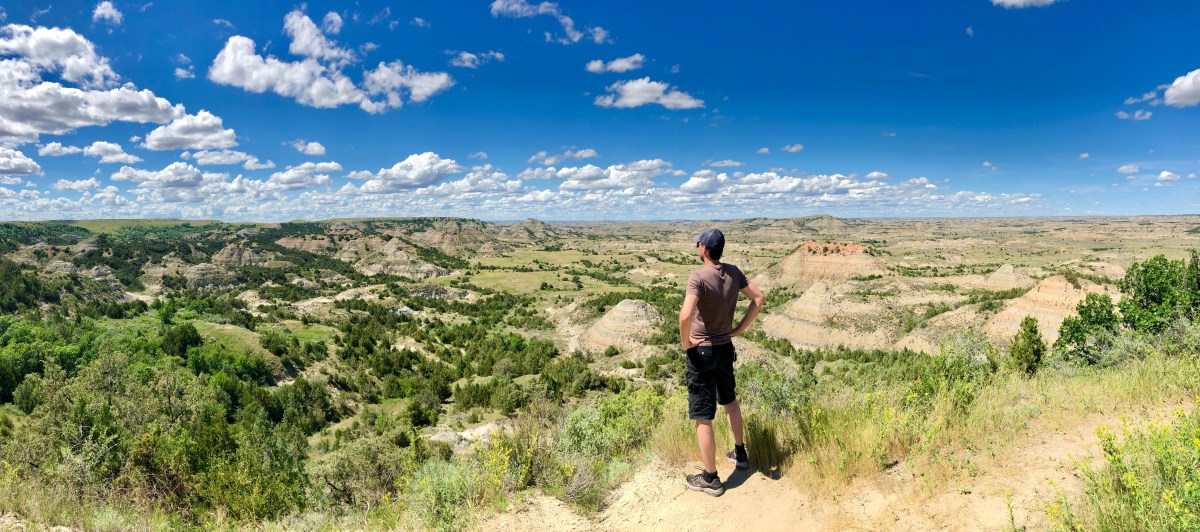 When researching, I made a list of a few of the hikes/ overlooks that were of interest: Painted Canyon Overlook (South Unit, short stop with incredible views, located outside of the Park technically), Wind Canyon Trail (South Unit, 0.4 miles, easy, 20 minutes, walk alongside a wind-sculpted canyon as you climb to the best views of the Little Missouri River), Boicourt Overlook Trail (South Unit, 0.2 miles, 15 minutes, easy, most beautiful view!, see Badlands stretch for miles here, and feel like you’re on top of the world, a little high up but worth it), and Buck Hill (South Unit, 0.2 miles, 15 minutes, somewhat steep climb up steps to the highest accessible point in the park.. we could see where we camped from here and it looked like a little dot in the distance!). We didn’t make it to Wind Canyon, but the others were great. If going to the South Unit, I would not miss Boicourt or Buck Hill. Make them must-sees on your list! You can also see the Maltese Cabin in the South Unit if you’re interested.