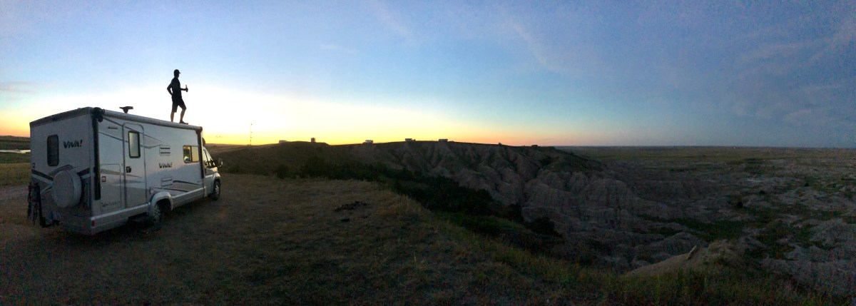 One of our favorite places to take in the sunrise and sunset was on “The Wall”. Listed as the second best boondocking site in the US, this camping site is 6 miles outside of Wall, and right before the Pinnacles Entrance to the park (around a mile), on the left side of 240 down an unmarked gravel/dirt road. In the distance, you’ll probably see a few RVS/campers already parked alongside the cliff that offers incredible views of the Badlands. There may be a few RVs, but “the wall” offered plenty enough spots to where we felt basically alone in the wilderness, like we had all of the Badlands to ourselves. It is highly recommended. Some of our best memories were made perched on “The Wall”.