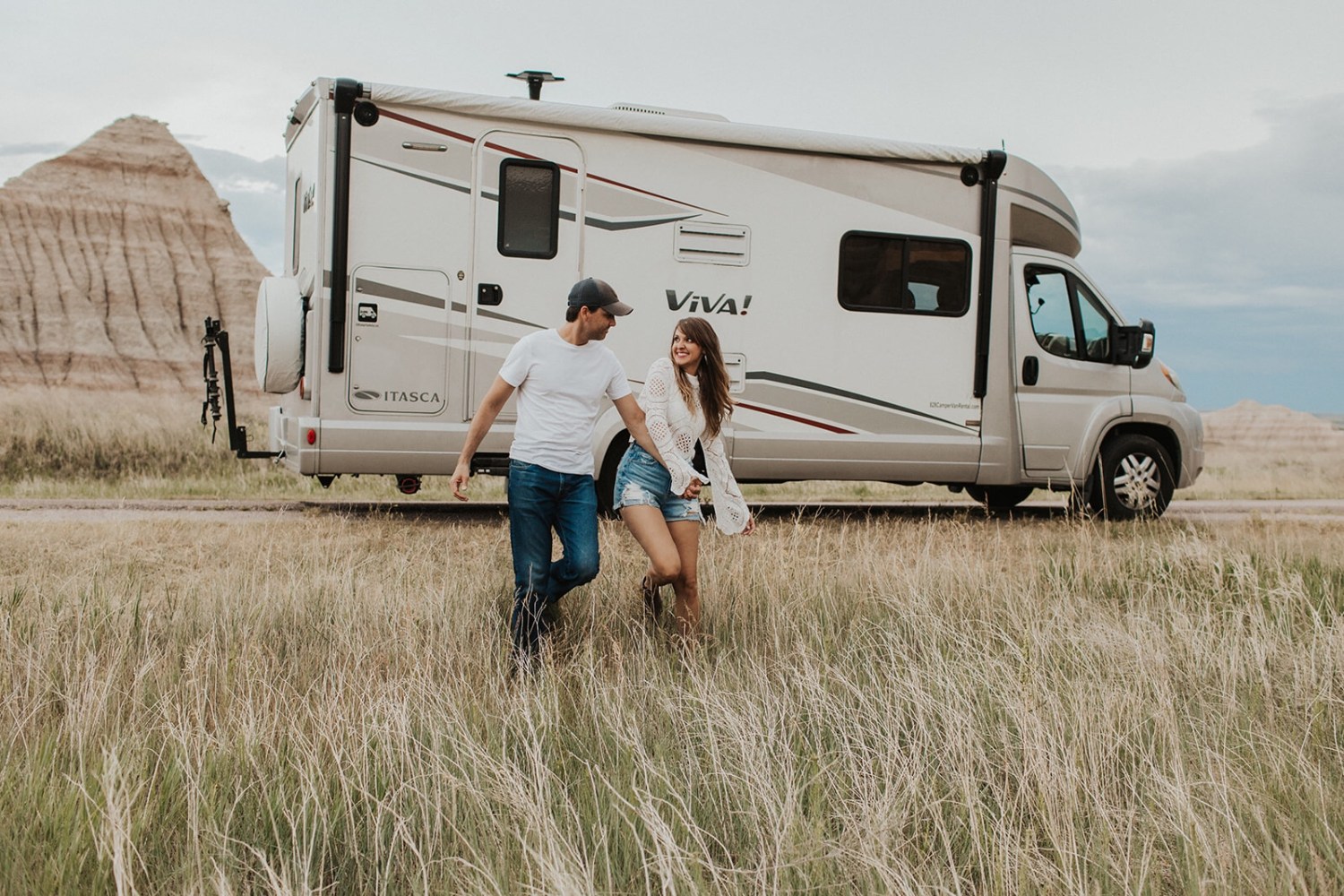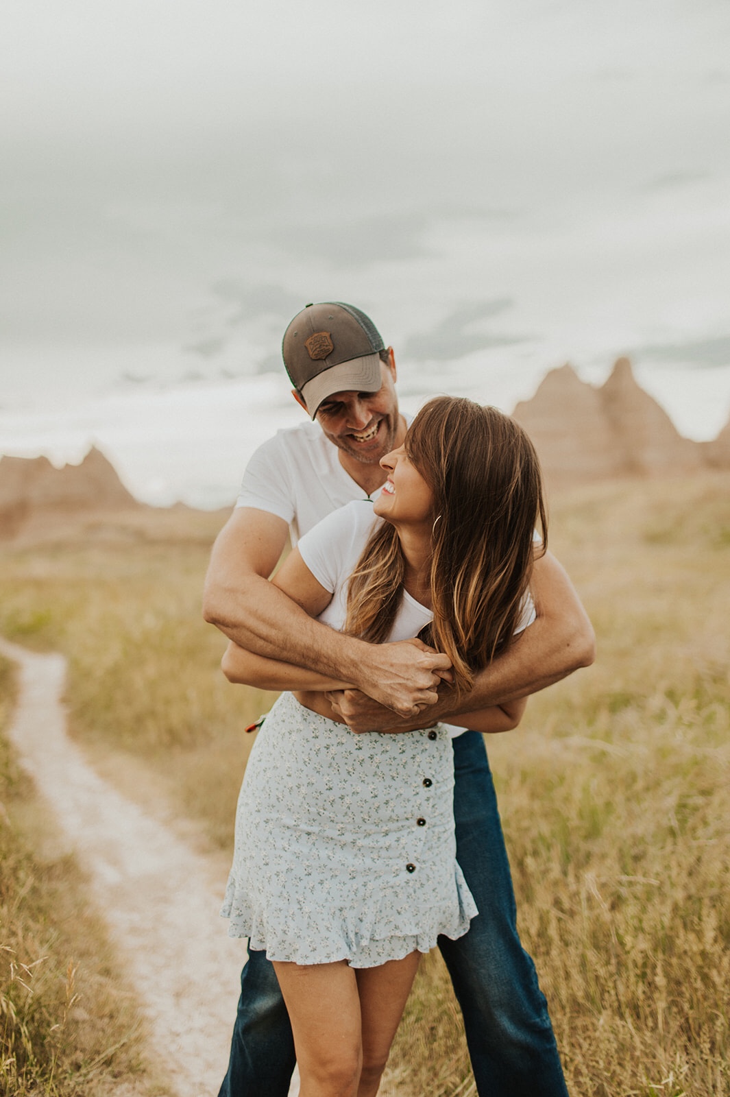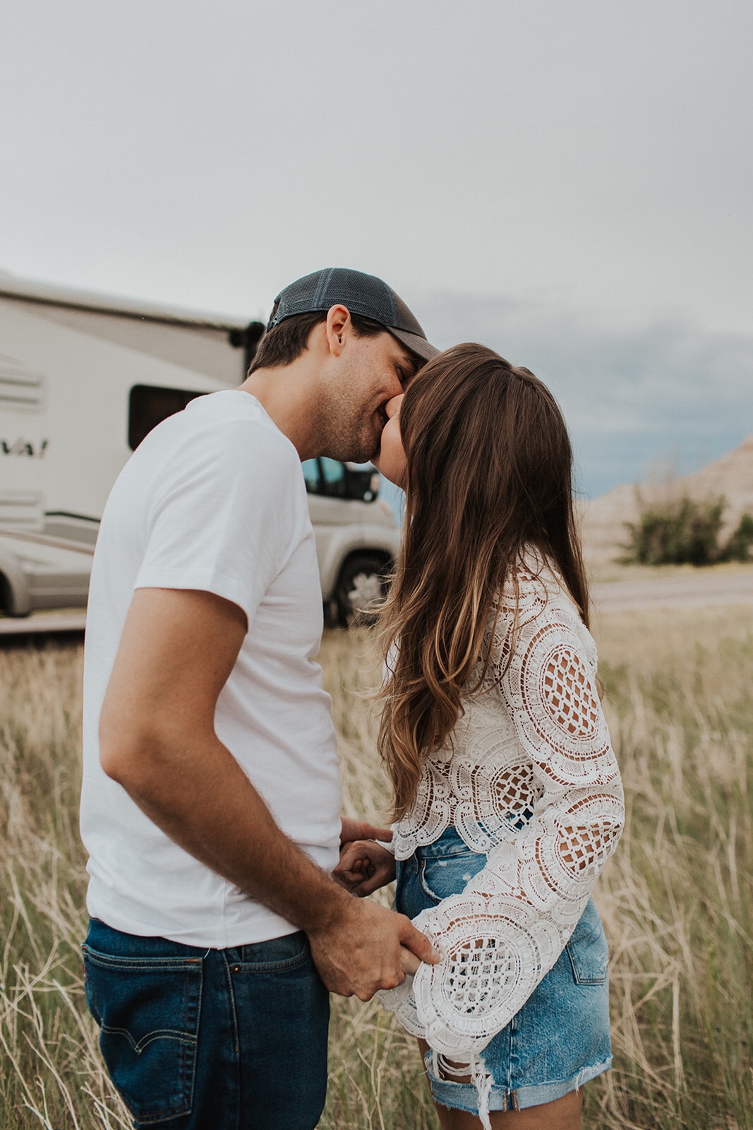 I thought it would be awesome to have our pictures made in the Badlands, to commemorate our first big adventure together. In the 10 months we’d been talking, we had been on a few little trips together, but nothing like this, and I couldn’t pass up a chance to take pictures with that landscape! I happened across Isaacson’s Photo Co. on Instagram, and she just so happened to be the perfect photographer (@theisaacsonsphotoco or you can check out her website: https://www.theisaacsonsco.com/photo). Becca picked out the perfect location to capture some moments of us with the RV and the beautiful Badlands as our backdrop. For these photos, we stopped off for the first little bit on the Castle Trail, which was directly across the road from the Door/Window/Notch Trails. I’m so glad we had these pictures made. Becca was so much fun and had us play little games to capture our excitement in the moment. I’ll always treasure these photos, as they capture perfectly how we felt about the trip. I think you can easily see our love for each other and the beautiful scenery around us. High on life.