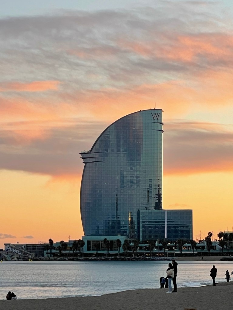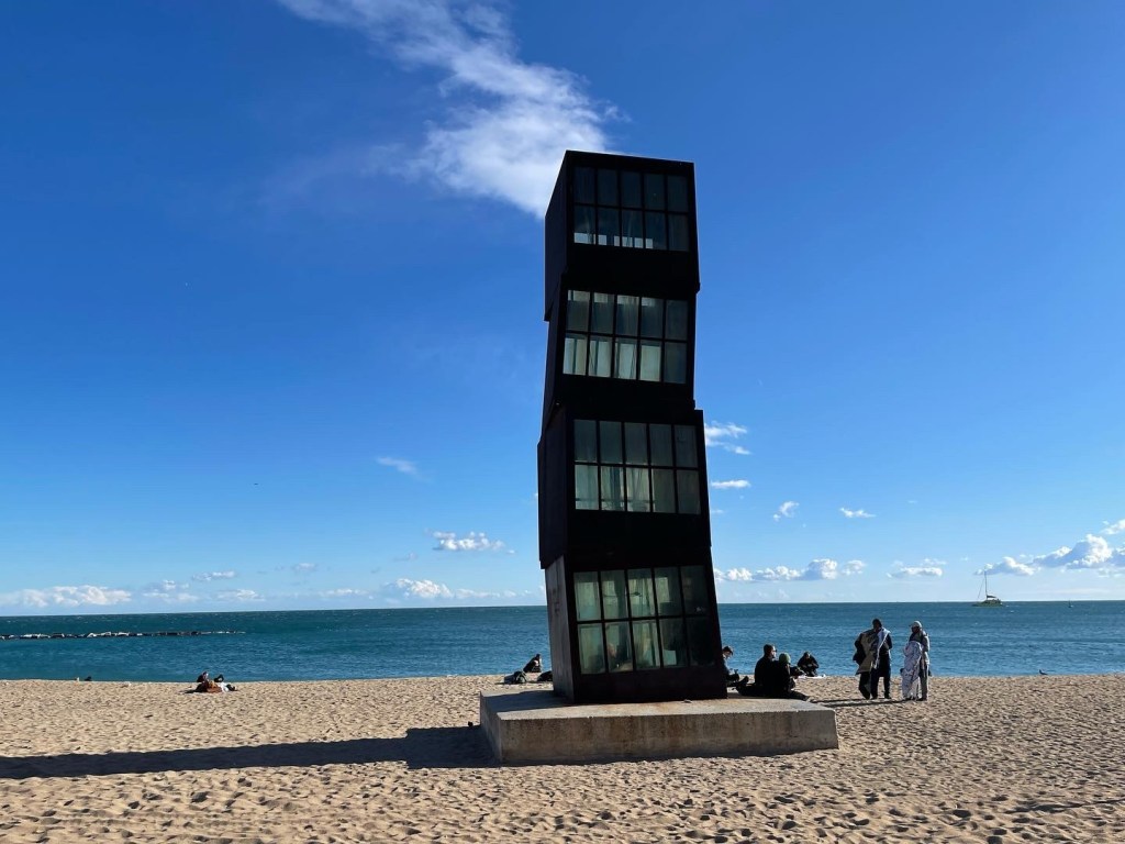 Barcelona is an urban city upon the shore, which is a nice mix for vacation. I dedicated one of my days to visiting a couple of Barcelona’s beaches, to take in the view, get away from the hustle and bustle of the city, and eat some good seafood. I went to Playa de la Barceloneta, which seems to be the beach that is consistently voted as Barcelona’s #1 beach spot. It took me a short 20 minutes by bus from Liceu station. It is in between the iconic shoreline landmark, the beautiful sun-reflecting W Hotel, and the Port Olímpic, used for the sailing events of the 1992 Olympics. Even on a mid 50’s December day, the beach still had a good number of visitors. The water was vibrant, and the sand was thankfully not annoying or sticky. There were a number of restaurants to the side of the boardwalk to visit. I ended up eating fried baby squid and seafood paella at Restorante Voramor, which does not have a direct ocean view but is still right beside of the beach. Along the boardwalk, you can also find unique sculptures. Make sure you take a towel to sit on the beach. You’ll have a few people come up and try to sell you blankets or mojitos. Most of them easy went away with a, “No thank you. I’m not interested.” Thankfully they were not super pushy like some other vendors at other beaches I’d been to. The day was an enjoyable day.