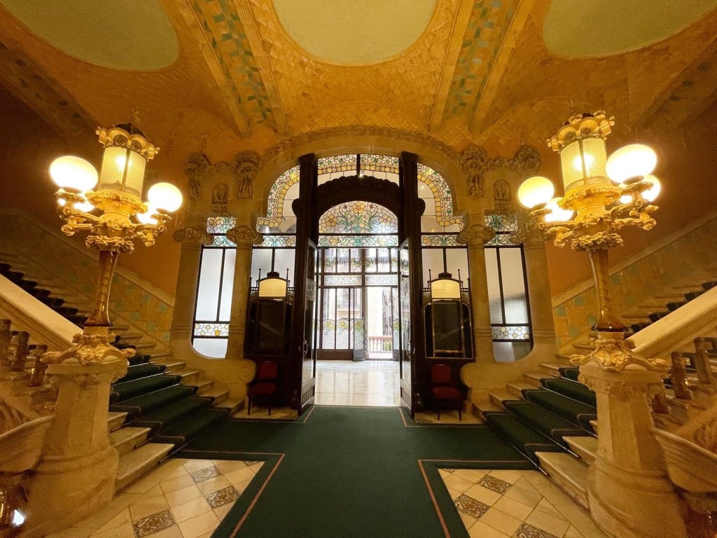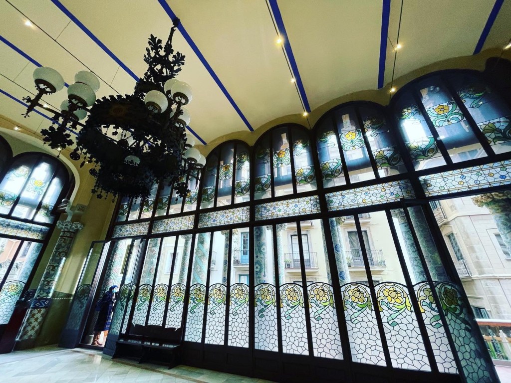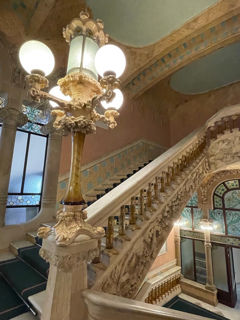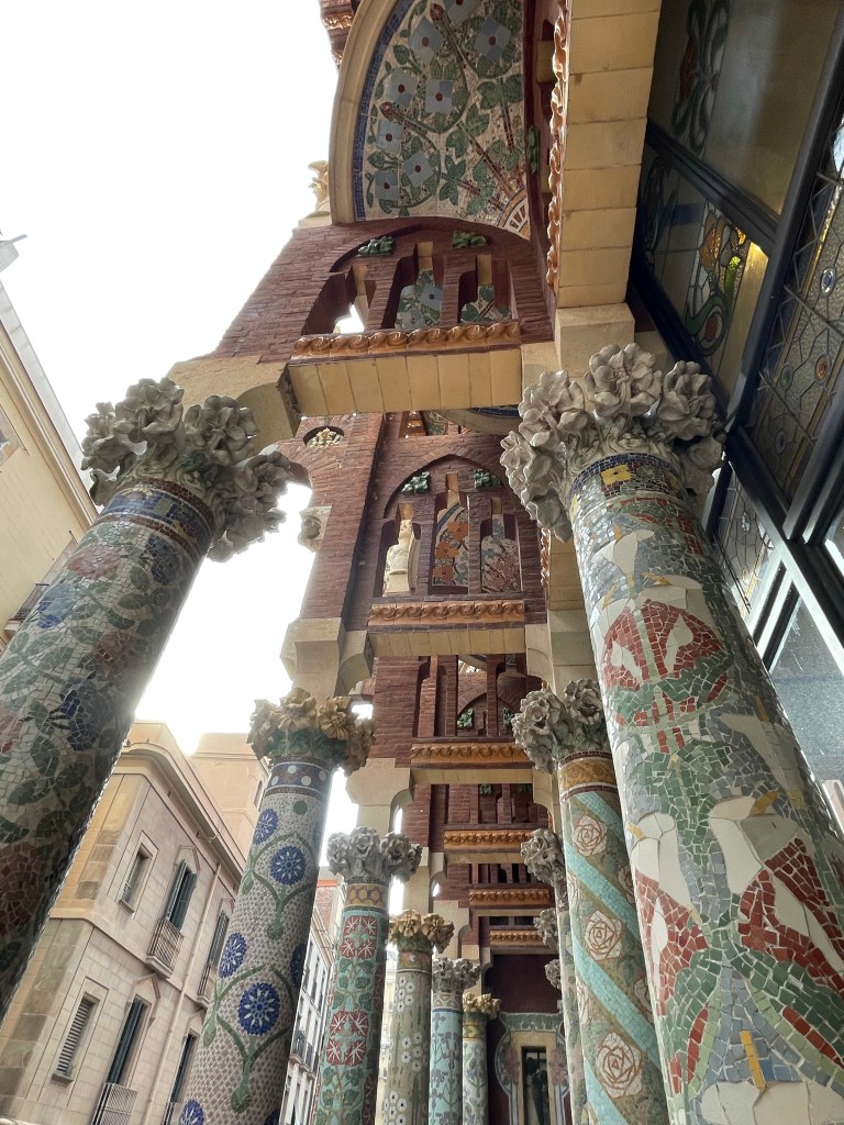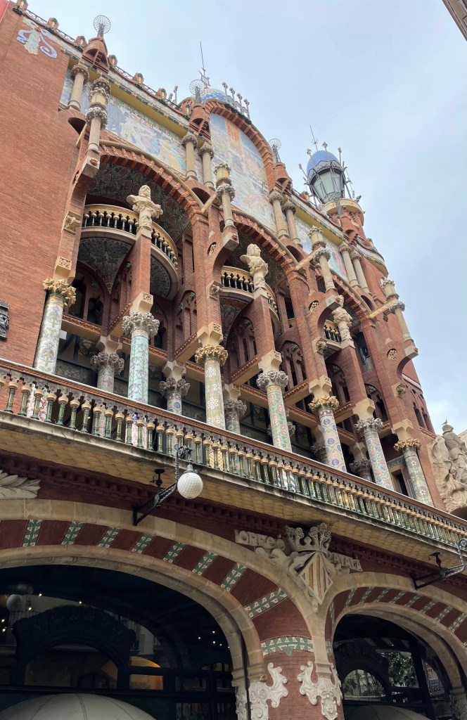 This is yet another amazing work of architecture, and one of Barcelona’s concert venues. It was designed by Lluís Domènech i Montaner, and constructed in the early 1900’s. Montaner wanted a venue that would work during the day, so he had the idea for the skylight. 2,000 roses are on the ceiling as part of the stone garden. They are a symbol of the legend of the patron saint of Catalonia, San Jordi, or as we know him, Saint George. The columns open up like palm trees and have peacocks at the top of them. All the chandeliers lean inwards, towards the skylight, like sunflowers to the sun. There are tributes to Wagner, Bach, and Mozart throughout. Admission was 12 euros for a self-guided audio tour that you access through QR code on your phone. The palace itself is not big, but is grand to see, and another great place to snap some pics (the tiled mosaic balcony screams “Spain!”). I spent around an hour here.