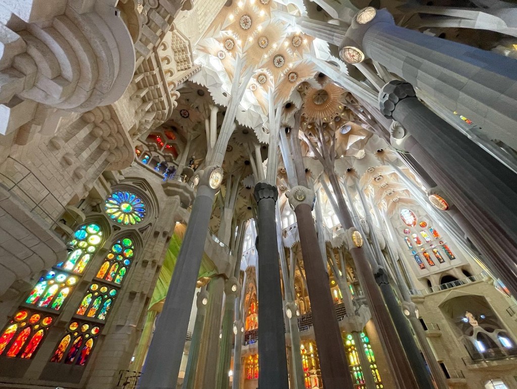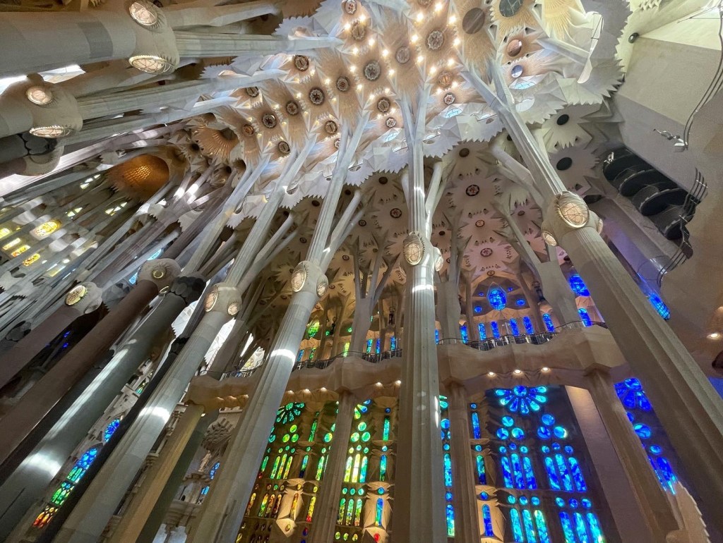 Quite possibly the most iconic building in Barcelona, la Sagrada Familia (basilica of the Holy Family), is a large cathedral that has been under construction since 1882. It is currently on its 9th architect in the span of 139 years, and they still work based on designs of Antoni Gaudi. The famous architect, Gaudi, was given the project after the first architect designed a Gothic church. Gaudi worked around the original plans, but put his own modern touches to the project. He ended up working on the cathedral his whole life, and is actually buried in the crypt here. He considered it his upmost duty. You can tell how much he poured himself into planning and thinking out every little detail of the church. The sides of the cathedral each have a different story relating to the life of Christ. First there’s the nativity facade, which shows the birth if Jesus. Jesus, Joseph, and Mary are surrounded by a choir of angels. There are the three wise men and Mary and Joseph on their way to Bethlehem. On this side there are 3 porticos to represent faith, hope, and charity. There is a large cypress tree at the top, which is the tree of life, with doves, a symbolism of peace. The passion facade shows the crucifixion of Jesus. It features the Last Supper, the kiss of Judas, and the trial leading to the crucifixion. There is a magic square with numbers next to the kiss of Judas. Any way you add them up, the number comes out to be 33, the age of Jesus when he died. At the very top of the crucifixion, there are 18 bones that lead up to a cross in a crown of thorns. The last facade, the glory facade, is still being constructed. It will show Jesus’ ascent into Heaven. It is to be the most monumental of them all, and will be the main entrance to the cathedral. Currently, there is a legal battle going on because there are apartment buildings where the steps leading up to this side of the cathedral should be. The inside of the cathedral is stunning! This is the most beautiful cathedral I’ve yet to see.. and probably ever will. The stained glass paints a rainbow of colors when the sun hits at different times of the day. The columns themselves are different colors of stone. They have a double twist design, symbolizing the saints ascending into Heaven and the angels descending to meet them. La Sagrada Familia is an architectural and religious masterpiece. I highly recommend a guided tour here, as a guide will be able to fully show all the little details one might miss while taking in the beauty of this place. (General admission is 21 euros without a guide, and around 27 euros with a guide.) There is a park to the nativity side of the cathedral. This is a great place to get some pictures with the entirety of it. The church is set to be finished around 2026, if all goes to plan. I was lucky enough to be in Barcelona when the top of the tower dedicated to Virgin Mary (featuring a star) was completed. They lit it up for the whole city to see that night, and even had a festival to celebrate.