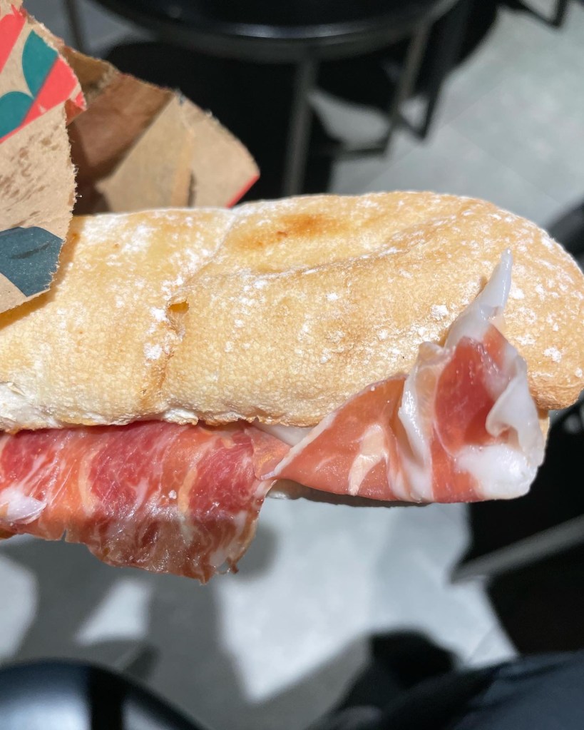 Jamon– Cured ham made from Iberian pig. Many times this may be offered as a tapa with cheese, or can be sold in the markets by itself. It can be quite expensive. I opted for a sub toasted with cheese at none other than Starbucks (it was only around 7 euros for the sandwich there). The thinly sliced ham tastes somewhat like traditional ham, but the texture and the cold saltiness give it a somewhat different taste.