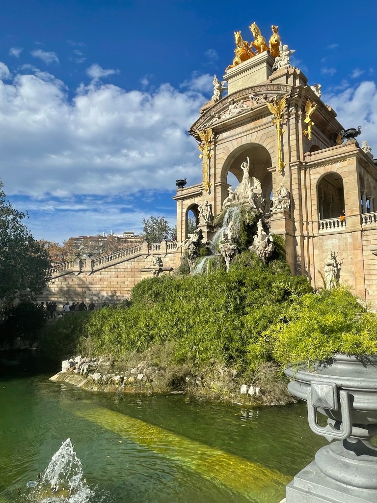 Cascada Monumental is simply breathtaking, and I have to give more details on this stunning masterpiece right in the middle of this park. When the fountain was first inaugurated, it lacked details and thus was criticized harshly by the press. Fontsere and other architects, one of which may have possibly been Gaudi (who would have been only a student of architecture at the time, and not very involved) made amendments to create the beautiful fountain it is today. Fontsere wanted it to look similar to the Trevi Fountain in Rome. The sculptures where the fountain feed from depict the birth of Venus. She emerges from a shell. At the very top of the arch, the golden statue depicts the chariot of Aurora. It has 4 horses leading his chariot. He holds a torch, which symbolizes sunrise illuminating the world every morning. The goddess of the sunrise is also found to one side of the fountain’s arch.