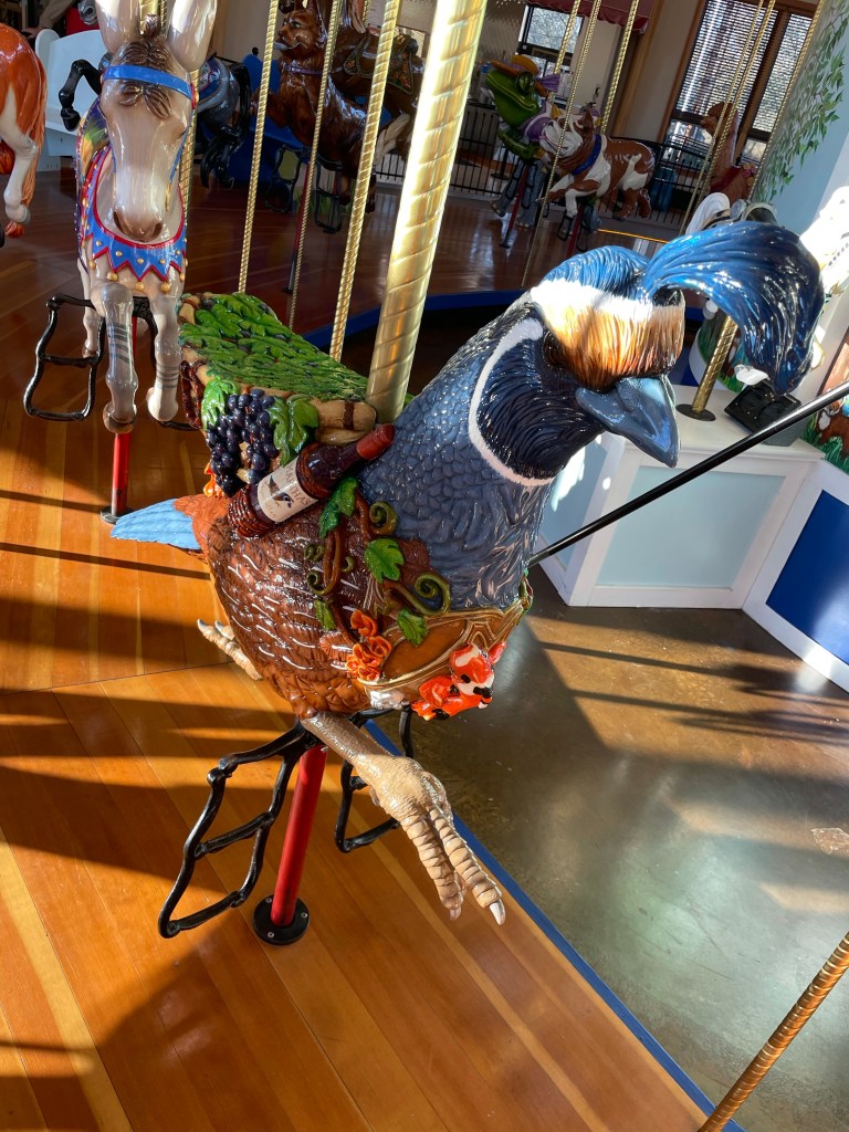 I made it just in time for a couple carousel rides (I don’t even care that I’m not a kid– I will forever love the carousel), but not the museum. What I love so much about this carousel is how unique the animals are. The artists who carve these animals do so based upon sponsor’s requests, and create a design with special meaning. For example, the quail i rode was named Martha, after the sponsor’s mother. They picked this animal since it was common on her family property. The saddle was made of grape vines and included a bottle of wine, since she now lives in Napa and is in the wine industry. I just love all the special little touches. The carousel is what the town is known for. To end the evening, I had an incredible meal at Vault 244, a classy restaurant with a great selection of dishes.