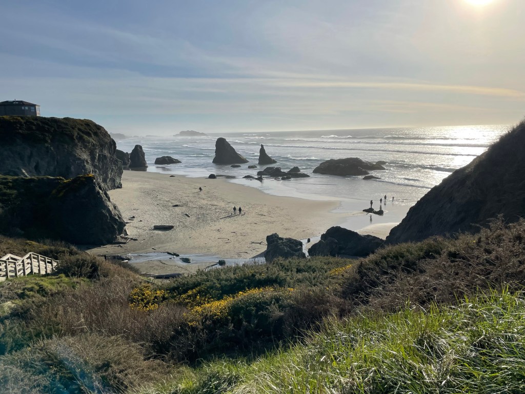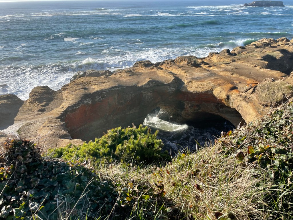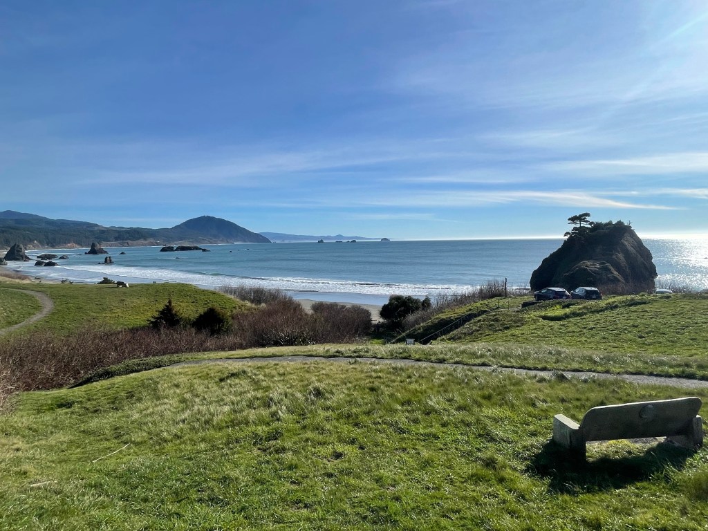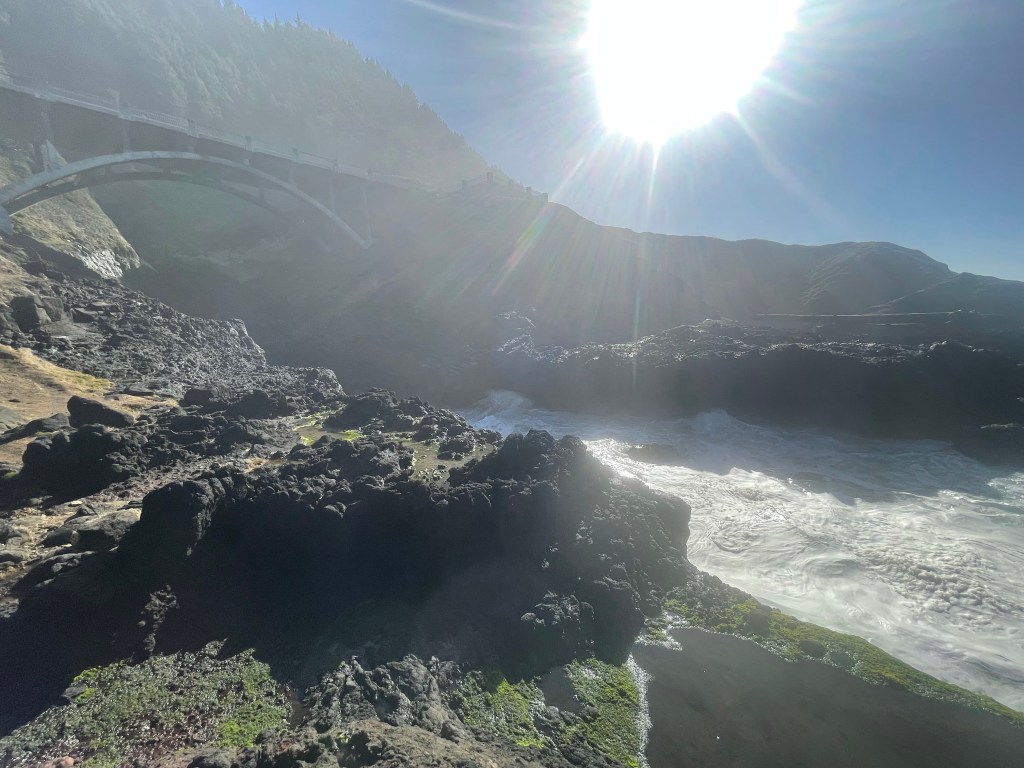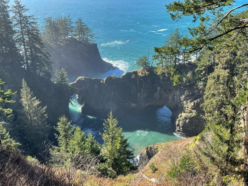 Brookings– If you go anywhere along the PCH, please stop here!! Samuel H. Boardman State Scenic Corridor offers so many beautiful sights. It goes up the PCH about 12 miles, and features some of the state’s only redwoods. You can explore as much or as little as you’d like. It has easy pull-offs, but the opportunity for many hikes. Regardless, you are not going to be disappointed in the views in this park. There are a few stops that I would recommend. (Cell service is very limited in the area and I wish I’d downloaded Google Maps with these spots before going, thus why I had a hard time and missed out on some areas).