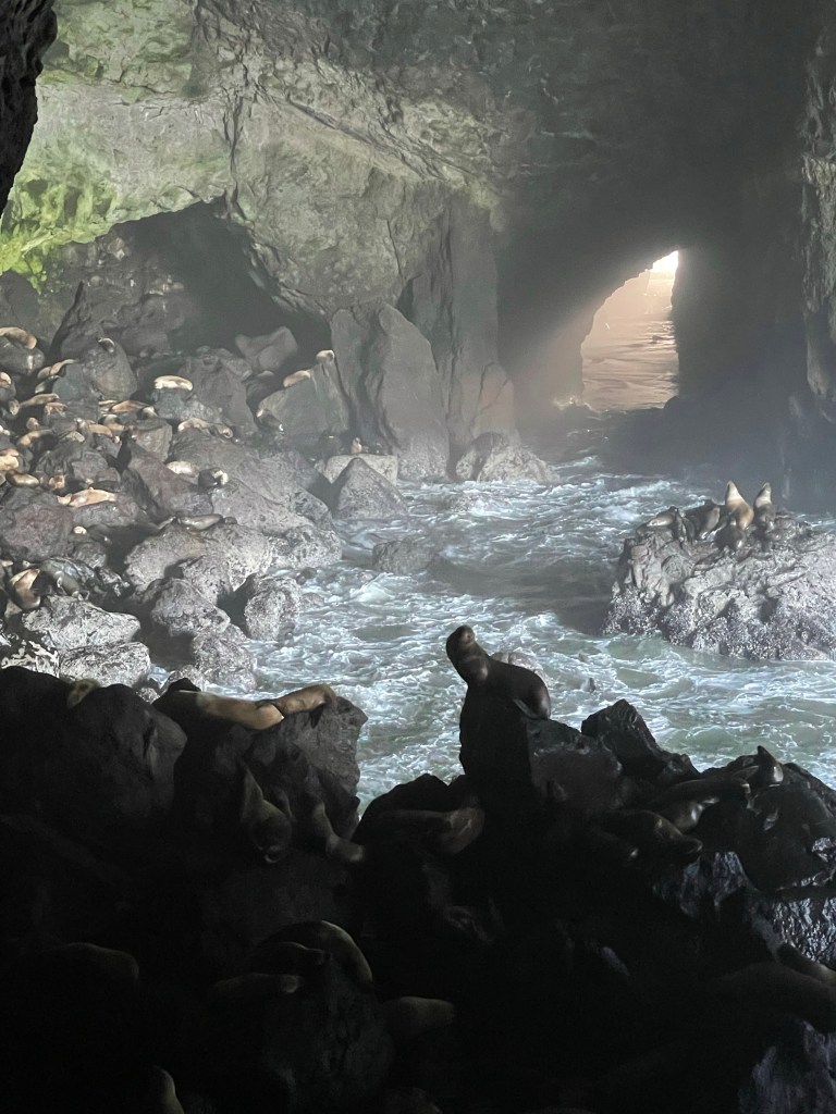 The first one was the Sea Lion Caves in Florence, OR, the largest sea lion cave in America. Honestly, I thought about not even stopping here as I couldn’t imagine what would be so cool about seeing a few sea lions in their natural habitat. I was wrong. SO cool. For $16, you can take an elevator 208 feet down to where you can view all the sea lions as they take a break from the water. In winter, you can see so many of them, and I was thankful I was here at a prime time of the year. While down in the cave, make sure to go on up to the Heceta Lighthouse Lookout. This is a great place to see it.